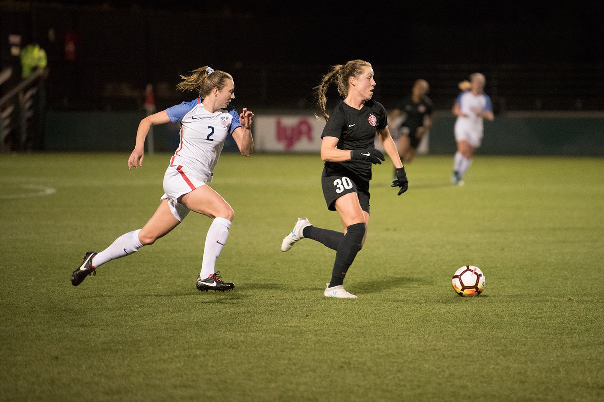 The back-four system, tested in the second half of the the game against the U23s and played mostly with trialists, isn’t really complete yet, and perhaps doesn’t really make any sense in the absence of Caitlin Foord and reported new signing Ana-Maria Crnogorcevic. A 4-2-3-1 actually gives less players attacking roles: the wingbacks become fullbacks and stay home more, Sonnett becomes a pure defender, the inside wingers push wider. The consequence is that the central striker becomes the most important figure in attack. The options in that spot are currently Tyler Lussi and possibly trialist Simone Charley, who will not travel to North Carolina, but is in contention to travel away to Chicago on a short-term contract. Christine Sinclair could arguably play in this position still, but losing her influence in midfield when Andressinha and Tobin Heath aren’t back yet doesn’t seem like something the team wants to do.